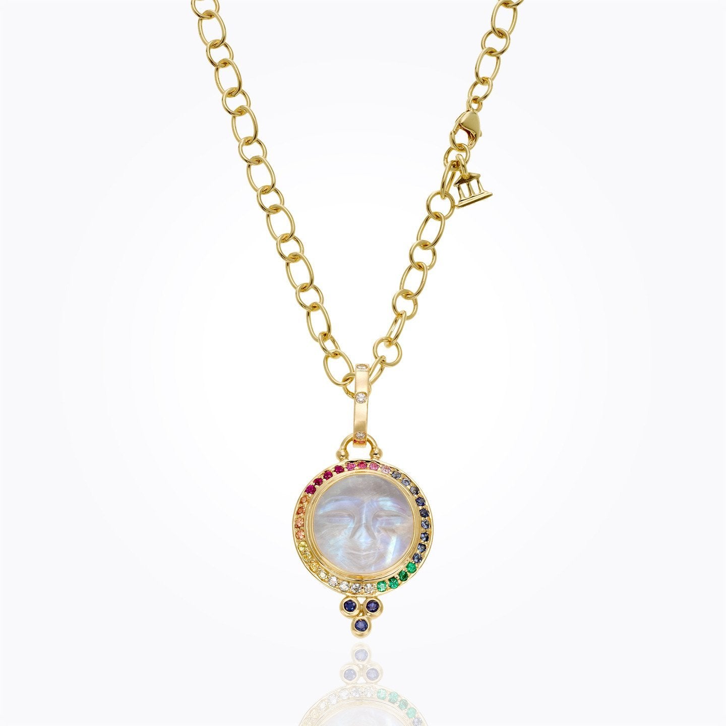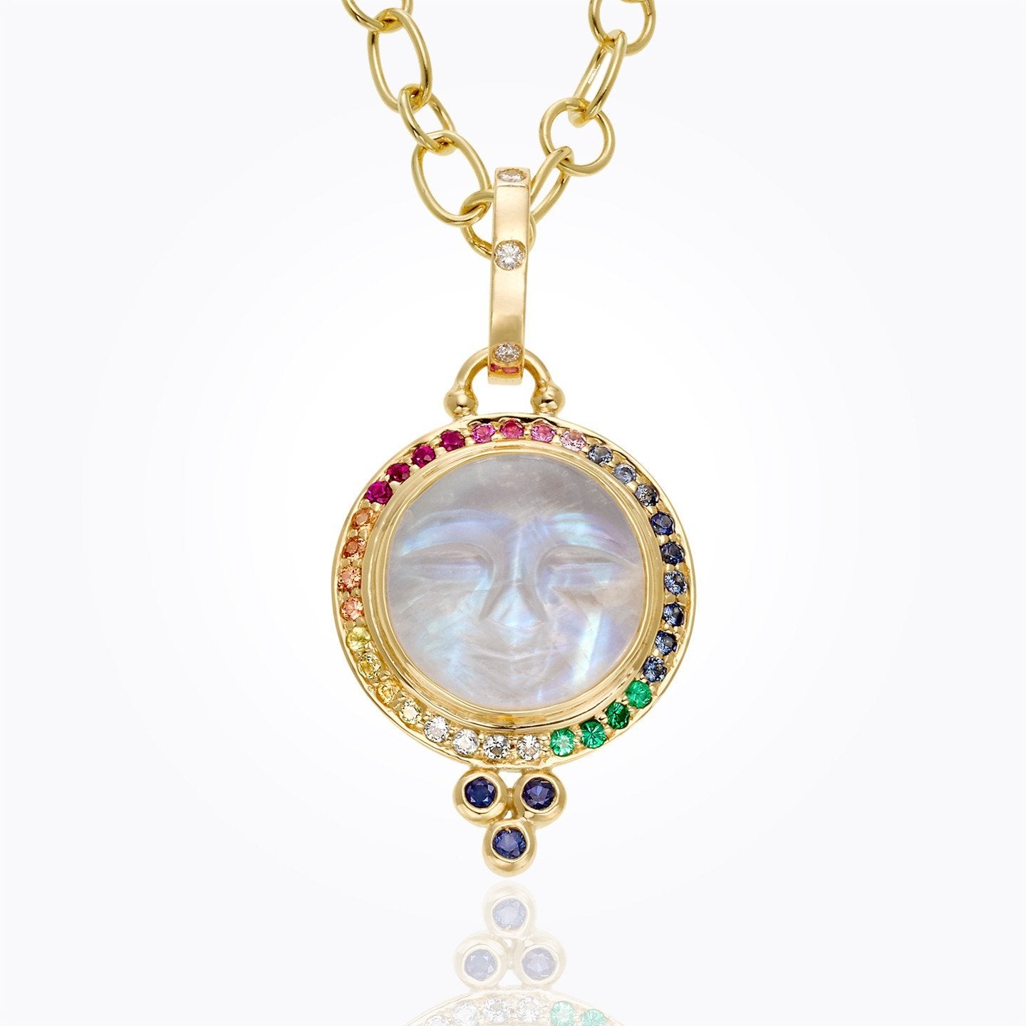 Write a review for 18K Moonface Pendant with royal blue moonstone, mix sapphire, and diamond