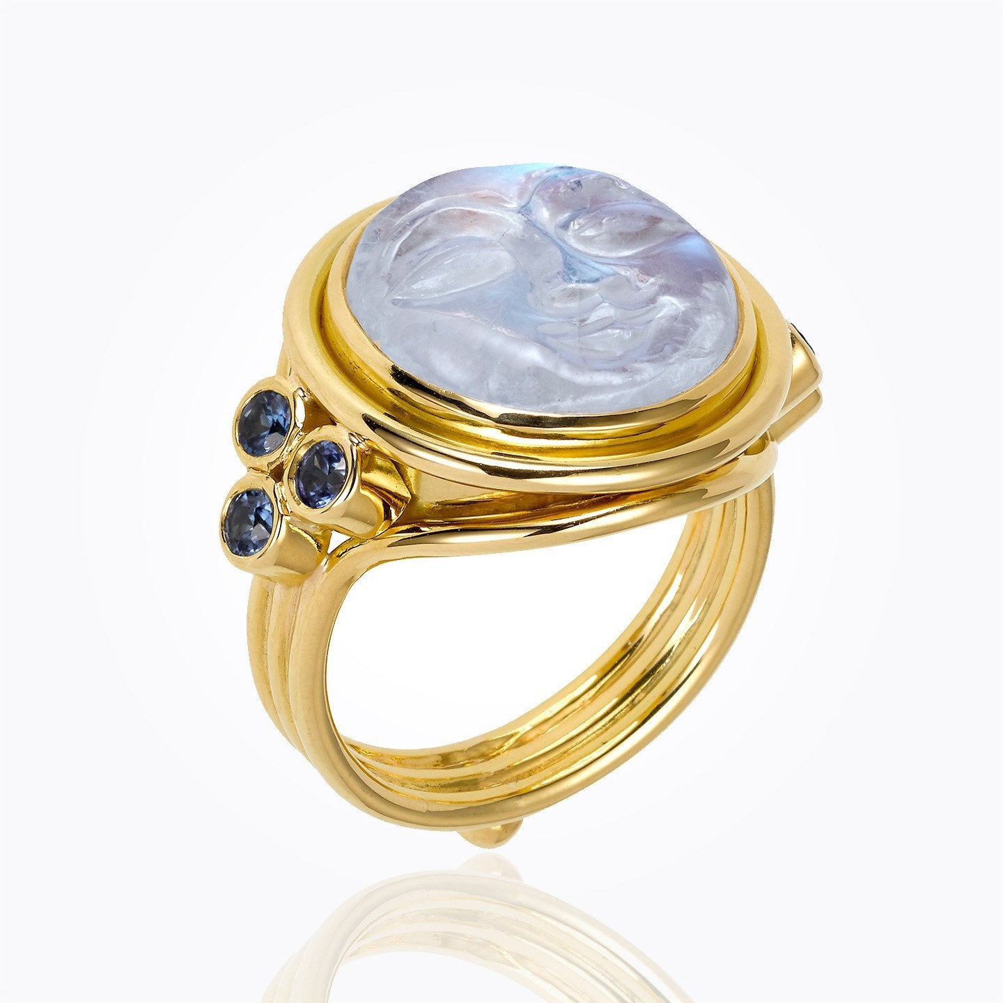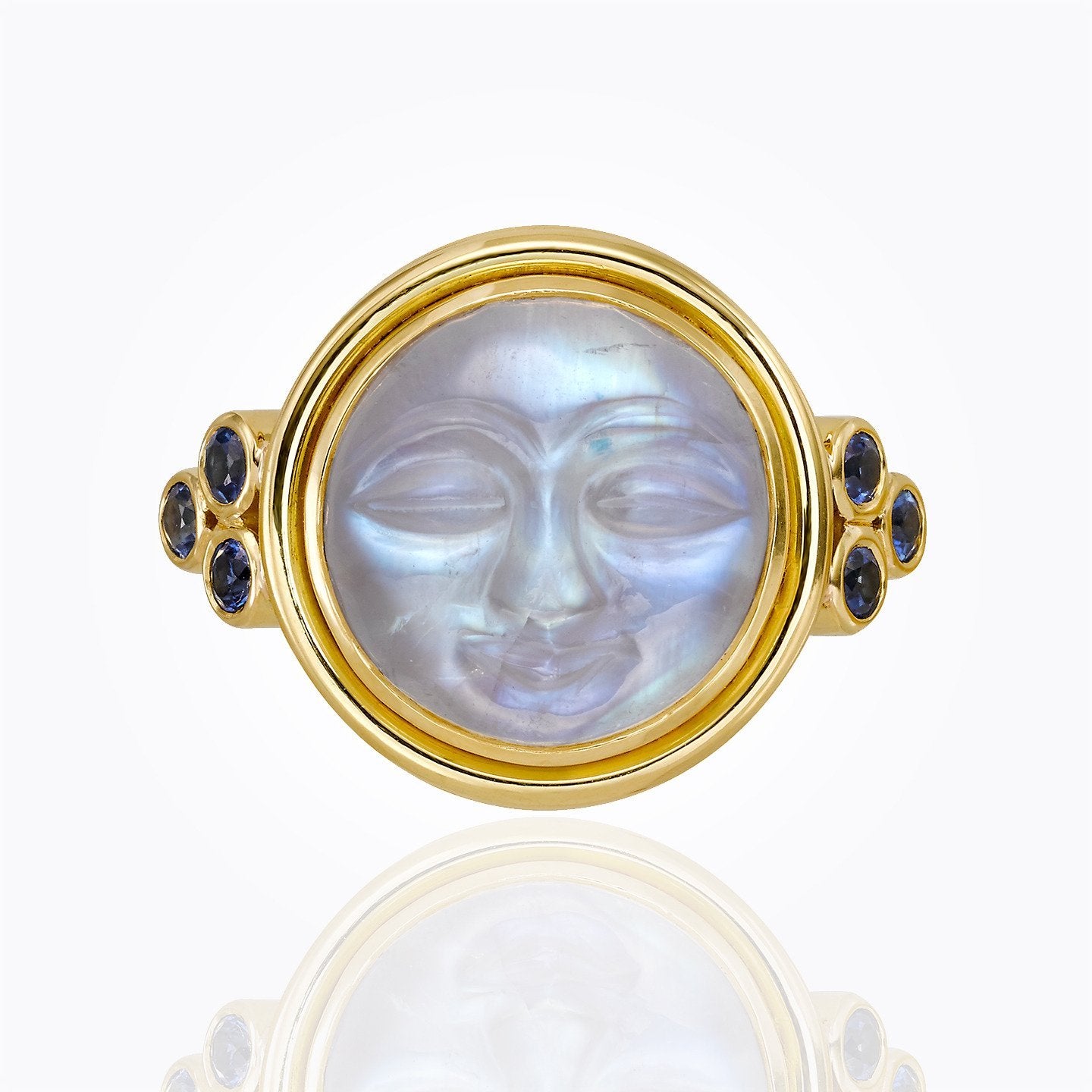 18K Moonface Ring with blue sapphire